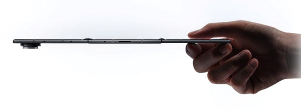 У повністю відкритому стані смартфон із роздільною здатністю 2160 x 1584 пікселів має 25,4-сантиметровий дисплей — трохи менший, ніж 27,9-сентиметровий дисплей планшета iPad 11-го покоління.
