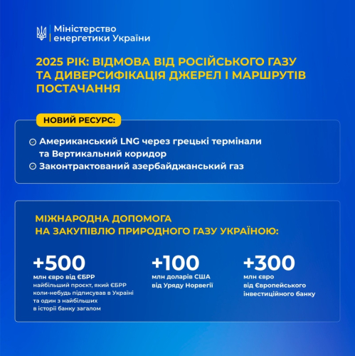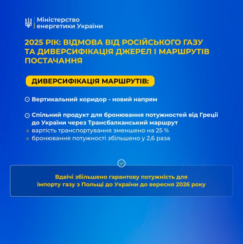 Крім того, у 2025 році Україна вперше імпортувала газ із Азербайджану, а гарантована пропускна потужність на маршруті з Польщі була збільшена удвічі.