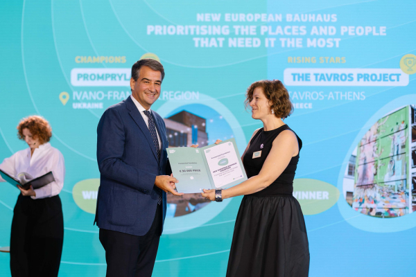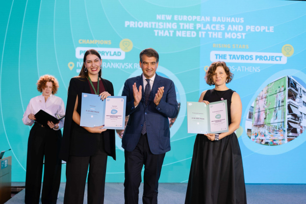 Премія New European Bauhaus (NEB, Новий Європейський Баухаус) була започаткована Єврокомісією у 2021 році за ініціативи Урсули фон дер Ляєн як продовження «Європейського зеленого курсу». Але NEB одразу «виріс» із екополітики ЄС і перетворився на ширший рух – архітектура, дизайн, інженерія, технології й мистецтво об’єдналися навколо творення спільного бачення Європи майбутнього. Брати участь у конкурсі віднедавна можуть не лише країни ЄС, а й усі держави, що входять до програми Horizon Europe, зокрема й Україна. Щороку NEB нагороджує у категорії Champions – це вже реалізовані проєкти, та Rising Stars – ідеї від молодих команд. Кожен переможець отримує грошову винагороду (від 15 до 30 000 євро) та комунікаційну підтримку від Єврокомісії. Таким чином вона стимулює розвиток місцевих ініціатив, а ще формує платформу для обміну ідеями та натхнення для міст, регіонів і громад.