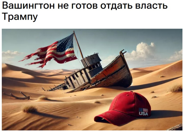 Надалі іншим маршрутом, але автор доходить до тих самих, омріяних Кремлем тез: «Нью-Йорк та Каліфорнія оголосять про невизнання Трампа президентом, що по суті стане першою репетицією можливого розпаду США. Цей сценарій набагато вірогідніший». Щоправда, пророкується, що він наразі не буде реалізований «до фінальної стадії, і в результаті Трамп таки вступить на посаду президента». Але ж «репетиція» – теж важливо.