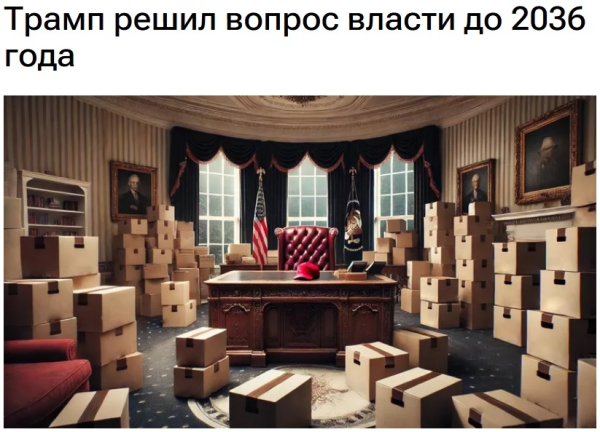 Цікаво, що після того, як остаточно стало відомо про «спокійну перемогу» пари Трамп-Венс, роспроп вдався до іншого краю. Той же видатний аналітик Акопов написав для читачів з пам’яттю рибок гупі дещо прямо протилежне розглянутому вище: «Трамп вирішив питання влади до 2036 року» (7 листопада). Вони і тут судять по собі: якщо вже прийшли до влади, то важко буде відтягти. І слідом за другим терміном Дональда гарантовано будуть два терміни сорокарічного Джей Ді Венса. Який зараз нібито ще й «страхує Трампа від убивства». Треба окремо відзначити цю нав’язливу, аж до печії, тезу роспропу. Цікаво, а чи знає сам Трамп, як сильно вона пропагується в російських медіа?..