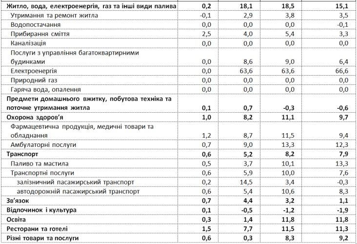 Ціни на транспорт зросли на 0,6% в основному через подорожчання автомобілів на 1,2%, проїзду в автодорожньому пасажирському транспорті на 0,6%, а також палива та мастил на 0,5%.