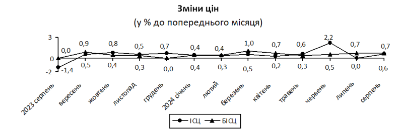 «Інфляція на споживчому ринку в серпні 2024 р. порівняно з липнем 2024 р. становила 0,6%, з початку року – 4,9%», – йдеться в повідомленні.