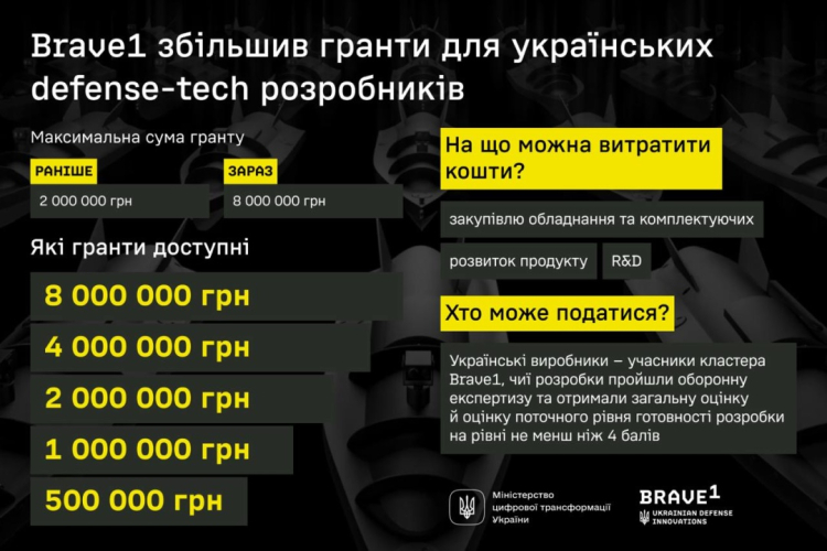 Вrave1 збільшив гранти розробникам оборонних технологій до 8 млн грн.