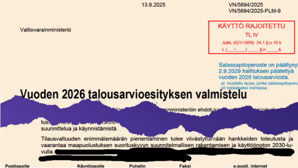 Йдеться про документ, який опинився у розпорядженні Yle на його запит. Частина інформації в документі була заштрихована, але ці дані можна було легко відновити.