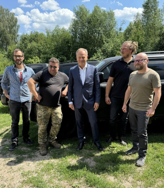 Прем’єр-міністр Польщі Дональд Туск зустрівся з відомим польським волонтером Матеушем Водзінським (“Ексен”), який вже два роки доставляє автомобілі для українських підрозділів, і закликав небайдужих допомагати йому.