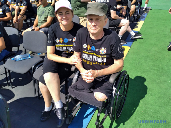 У натовпі помічаю чоловіка на кріслі колісному та жінку, яка його супроводжує. Це теж учасники змагань – подружжя Сергія Кошельнікова та Вікторії Бойчук із Харкова.