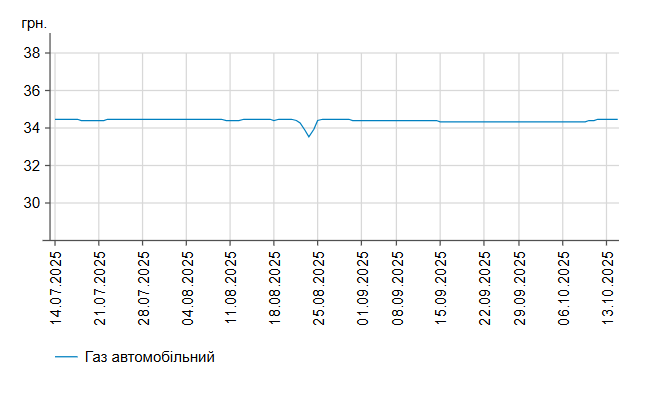 Зокрема, зафіксовано такі середні ціни на пальне: бензин марки А-95 (преміум) – 63,48 грн/л; бензин марки А-95 – 58,77 грн/л (здешевшав на 1 коп.); бензин марки А-92 – 57,18 грн/л; дизельне пальне – 55,92 грн/л (здешевшало на 1 коп.). Середня ціна автогазу становить 34,46 грн/л, як і попереднього дня.
