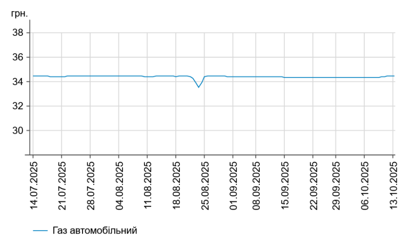 Зокрема, зафіксовано такі середні ціни на пальне: бензин марки А-95 (преміум) – 63,48 грн/л (здорожчав на 18 коп.); бензин марки А-95 – 58,78 грн/л (здорожчав на 8 коп.); бензин марки А-92 – 57,18 грн/л (здорожчав на 35 коп.); дизельне пальне – 55,93 грн/л (здорожчало на 8 коп.). Середня ціна автогазу становить 34,46 грн/л, що на 2 коп. більше порівняно із попереднім робочим днем – 10 жовтня.
