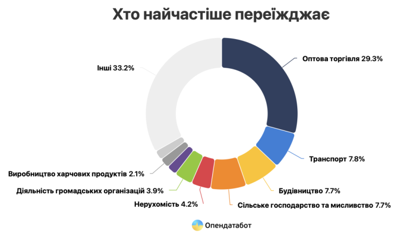 Лідерами за переїздами стали компанії, які займаються оптовою торгівлею — 344 релокацій (29,3%) та транспортна галузь — 92 релокації (7,8%).