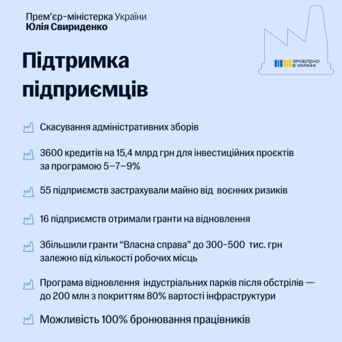 На відновлення виробництв можна отримати грант до 16 млн грн. Цією підтримкою вже скористалися 16 підприємств на загальну суму 188 млн грн.