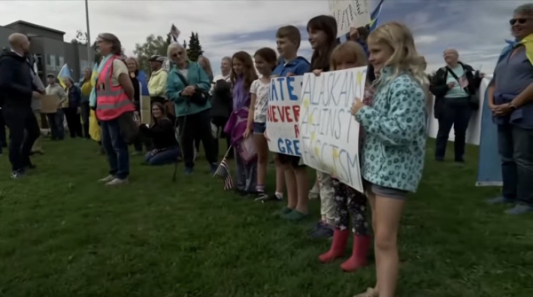 Мешканці Аляски вийшли на вулиці з українськими прапорами на знак протесту проти приїзду Путіна