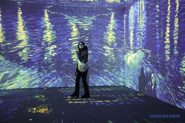 Жінка відвідує міжнародну імерсивну виставку "Всесвіт ван Гога", присвячену творчості нідерландського художника Вінсента ван Гога, на території ВДНГ, Київ, 11 квітня 2026 року.