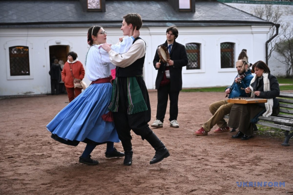 Учасники танцюють на території Національного заповідника "Софія Київська", де втретє з нагоди світлого свята Воскресіння Христового відбувся фестиваль просто неба "Великдень у Софії Київській", Київ, 12 квітня 2026 року.