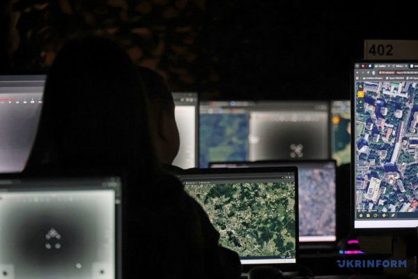 Співробітниця дивиться у монітор в пункті управління першої приватної компанії, яка надає послуги протиповітряного захисту, 10 квітня 2026 року.