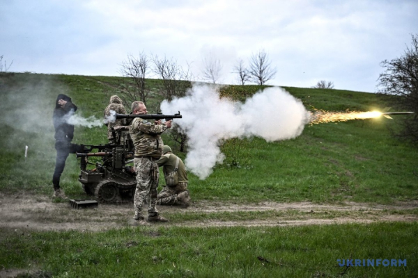 Військовий стріляє з гранатомета в межах тестування наземних роботизованих комплексів спільно з розробниками на одному з полігонів, 10 квітня 2026 року.