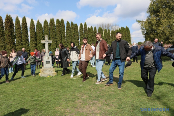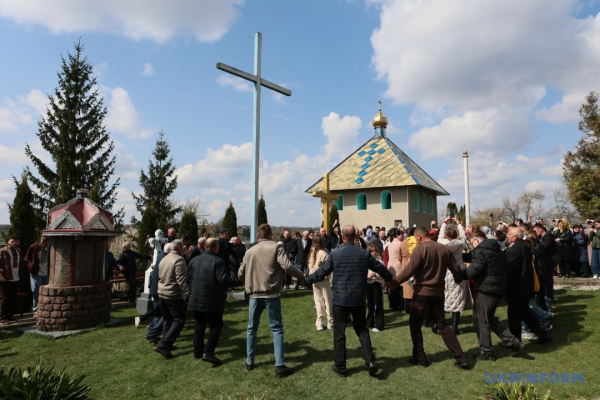 Тим часом 77-річний Іван Іванович починає вести танець. Чоловіки, взявшись за руки, йдуть із ритмічними рухами навколо церкви.