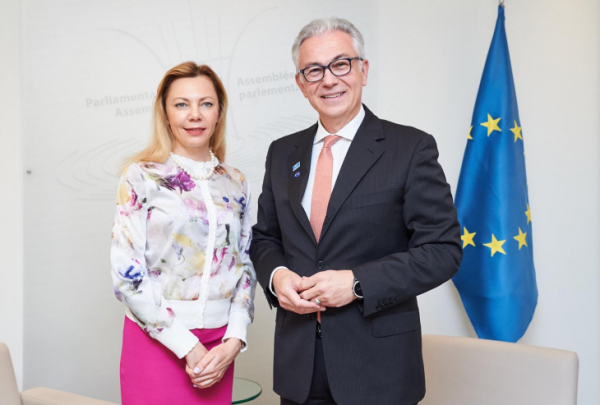 Заступник міністра закордонних справ України Ірина Боровець і президент Парламентської Асамблеї Ради Європи Теодорос Русопулос обговорили створення всеохоплюючого компенсаційного механізму для постраждалих від російської агресії.