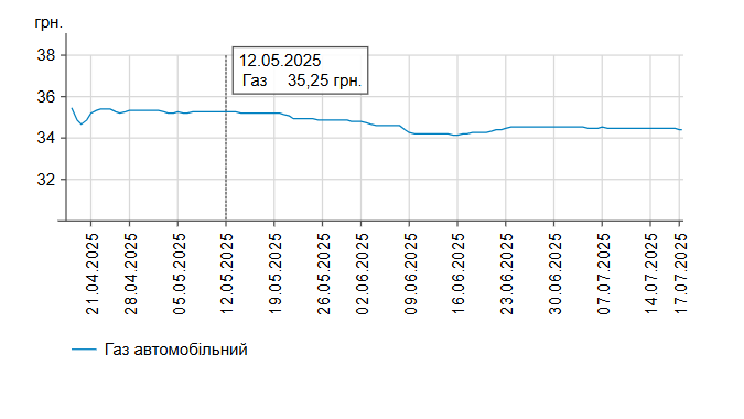 Зокрема, зафіксовано такі середні ціни на пальне: бензин марки А-95 (преміум) – 63,61 грн/л (здорожчав на 0,3%); бензин марки А-95 – 59,01 грн/л; бензин марки А-92 – 58,17 грн/л; дизельне пальне – 55,98 грн/л (здорожчало на 0,03%). Середня ціна автогазу становить 34,42 грн/л, що на 0,14% дешевше порівняно із попереднім днем.