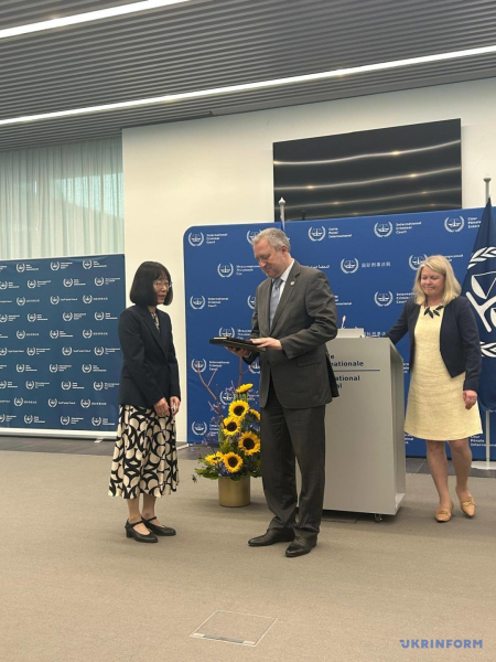 Вона також вручила послу України в Нідерландах Андрію Костіну примірник Римського статуту.