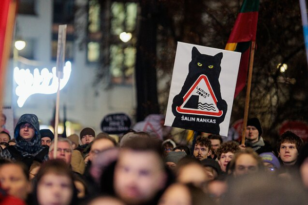 Поки Сейм продовжує розглядати проєкт правок, у середу ввечері на площі Незалежності люди скандували "Руки геть від свободи слова" і розпалювали багаття перед будівлею парламенту. Акція тривала з 18 до 20 години. До протесту приєднуються й інші міста Литви.