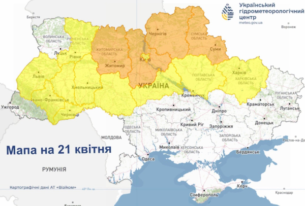 За даними синоптиків, 20 квітня на північному сході країни, 21-22 квітня в північних областях, 22 квітня і у західних та більшості центральних областей в повітрі заморозки 0-3°. ІІ рівень небезпечності, помаранчевий.