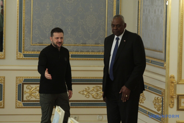 Президент Володимир Зеленський проводить зустріч з міністром оборони США Ллойдом Остіном.