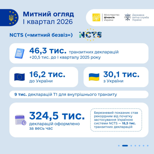 У межах «митного безвізу» (NCTS) оформлено 46,3 тис. транзитних декларацій, що на 20,5 тис. більше, ніж торік.