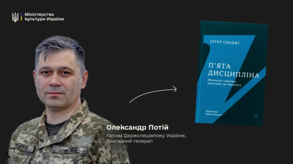 Голова Державної служби спеціального зв’язку та захисту інформації, бригадний генерал, доктор технічних наук, професор Олександр Потій акцентує на управлінській класиці Пітера Сенджі «П’ята дисципліна. Майстерність та практика зростання організації».