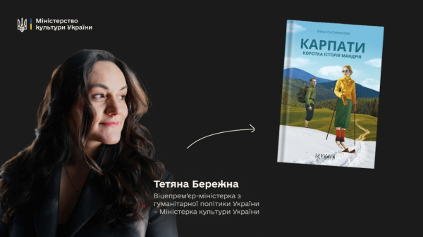 Віцепрем’єр-міністерка з гуманітарної політики – міністерка культури України Тетяна Бережна рекомендує книгу «Карпати. Коротка історія мандрів» Ірини Пустиннікової, яка поєднує мандрівки з історичним контекстом й допомагає глибше відчути простір і культуру країни.