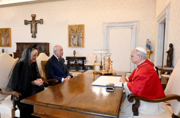 Відбулася приватна аудієнція Папи з королівським подружжям, а потім кілька паралельних зустрічей: королева Камілла відвідала Паолінську каплицю, а Чарльз III провів переговори в Державному секретаріаті з кардиналом П'єтро Пароліном.