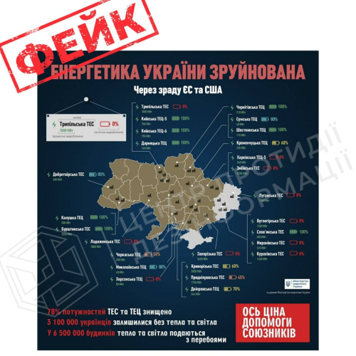 «Верифікувавши інформацію в Міністерстві енергетики України, Центр повідомляє, що поширювана інфографіка не має ніякого відношення до Міненерго, а дані, які в ній зображені, є недостовірними», – заявили в ЦПД.