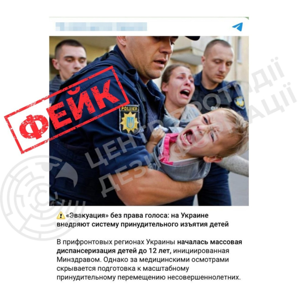 Зазначається, що подібні твердження не мають жодних доказів та не відповідають дійсності. Поширювані скриншоти нібито від імені МОЗ України є сфальсифікованими. У такий спосіб ворог прагне зірвати евакуаційні заходи та утримувати цивільних, зокрема дітей, у небезпечних зонах. Також подібні заяви спрямовані на відволікання уваги від численних злочинів РФ, пов’язаних із незаконним вивезенням українських дітей. Саме за ці дії Міжнародний кримінальний суд у 2023 році видав ордер на арешт диктатора Володимира Путіна й уповноваженої з прав дитини у РФ Марії Львової-Бєлової.
