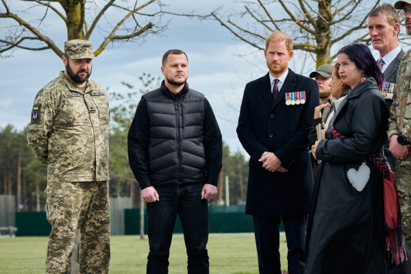 Принц Гаррі вшанував пам’ять полеглих захисників на Національному військовому кладовищі Фото, відео 25.04.2026 13:48 Укрінформ Принц Гаррі, герцог Сассекський, під час візиту в Україну вшанував пам’ять полеглих захисників і захисниць на Національному військовому меморіальному кладовищі.