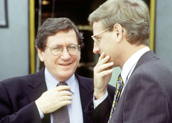 Річард Голбрук (зліва) і Карл Більдт перед мирними переговорами в Сараєво, Боснія і Герцеговина, в жовтні 1995 р. (Фото Charlie Parshley/wikipedia)