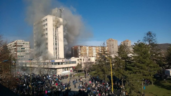 Будівля уряду в Тузлі (кантон Тузла) під час антиурядових зіткнень 7 лютого 2014 р. (Фото wikipedia)