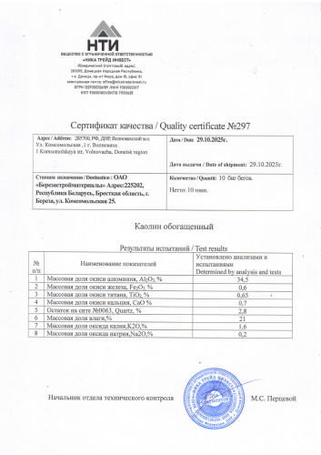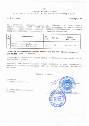 Як засвідчують наявні документи, партії збагаченого каоліну в біг-бегах перевозили автомобільним транспортом на адресу ВАТ «Березабудматеріали» щонайменше з 2025 року. Згідно з рахунками-фактурами, постачання цьому білоруському підприємству відбувалися напряму – без ростовської прокладки «Ніка».