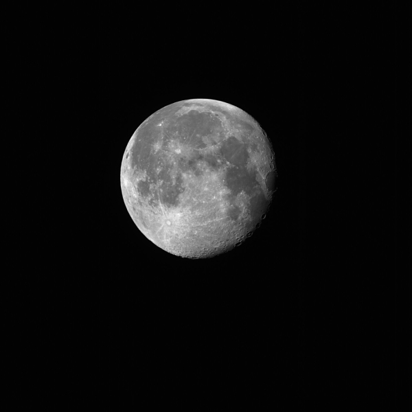 Зображення з вражаючою роздільною здатністю близько 5 км показує помітні місячні особливості, зокрема кратер Коперник, кратер Тихо та місячні моря: Море Спокою, Море Вологи та Море Хмар.