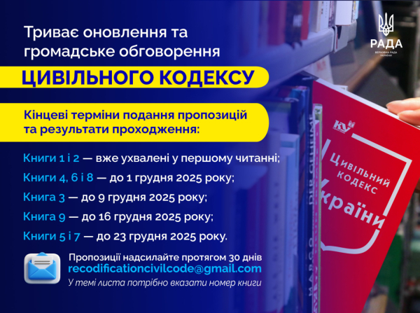 На сайті Ради оприлюднили повний комплект проєктів книг оновленого Цивільного кодексу