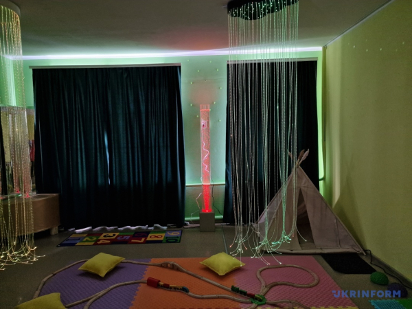 Практична психологиня закладу Наталія Мацепа пояснила, що сенсорна кімната розрахована на те, щоб активувати всі сенсорні системи людини: від тактильних відчуттів – до зору, слуху та нюху зокрема, тому що тут є спеціальна аромалампа.