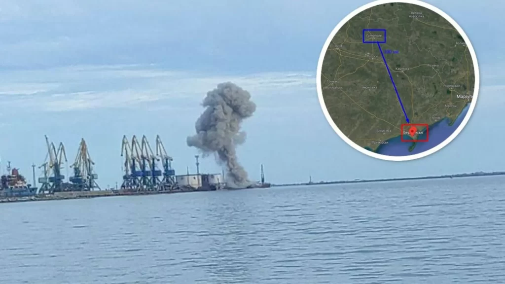 Вибух відбувся в Бердянському порту. Над причалом піднявся стовп диму, який видно з кількох точок міста.