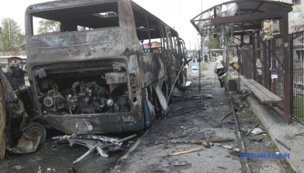 Наслідки ранкового влучання ворожого БпЛА в зупинку в Дніпрі / Фото: Микола М’якишов, Укрінформ 1 / 13