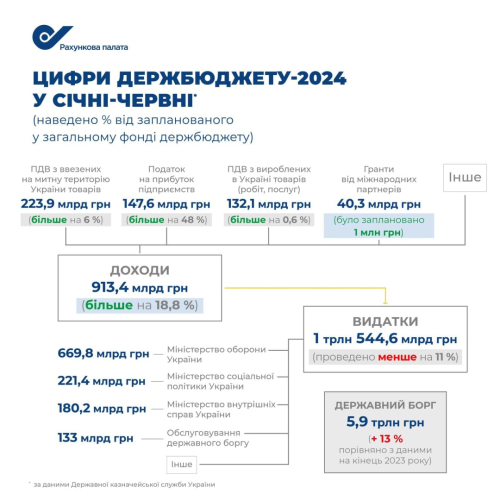 Рахункова палата підтвердила перевиконання доходів держбюджету за І півріччя на 18,8% Інфографіка 29.07.2024 18:21 Укрінформ Доходи загального фонду держбюджету України за перше півріччя 2024 року перевиконані на 18,8%, а видатків проведено на 11% менше запланованого.